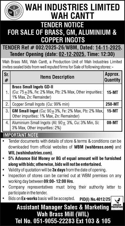 Manager SalesMr. Muhammad Talha       +92-51-905522283 Ext 103amsales.wbm@wahindustries.com